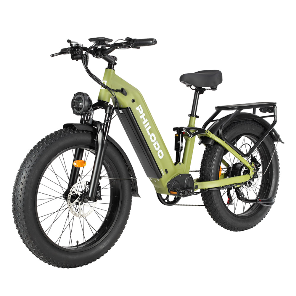 The PHILODO Falcon is an absolute beast of an e-bike, built for the rider who wants uncompromising power and presence. Its massive dual motors and dual batteries deliver thrilling performance and incredible range, while the full-suspension frame and fat tires provide a surprisingly comfortable ride. For those who want to dominate any terrain, this bike is a force of nature.